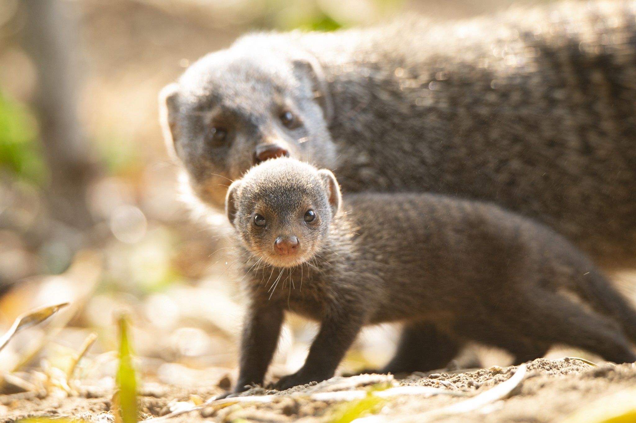 Banded mongooses are cooperative breeders: a breeding system in which some individuals reproduce and others, called helpers, focus on raising the offspring. Unlike other cooperative breeders however, helping in banded mongooses takes the form of ‘escorting’, where each helper forms a close bond with a single offspring which it feeds, protects, and teaches how to forage. Around four or five females in each give birth together on exactly the same day, which means that mothers can’t identify their own offspring in the communal litter. Since adults don’t know which pups are their own, they provide extra food to the smallest and weakest offspring, which has the effect of levelling out inequalities among pups and ensuring that the maximum number of young survive.